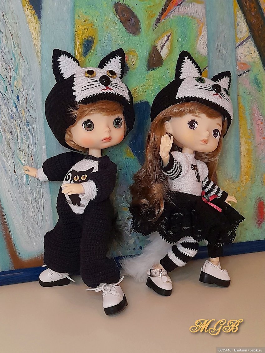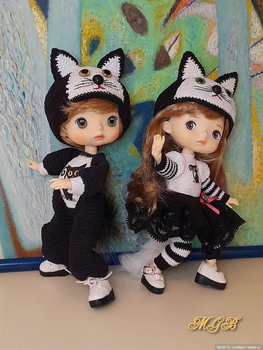 В конце 2022 года я решила создать для своих кукол образы-символы 2023 года в виде костюмов Котов и Кошечек. Полюбила эти образы так, что навязала многим своим куклам подобные комбезики и шапочки.