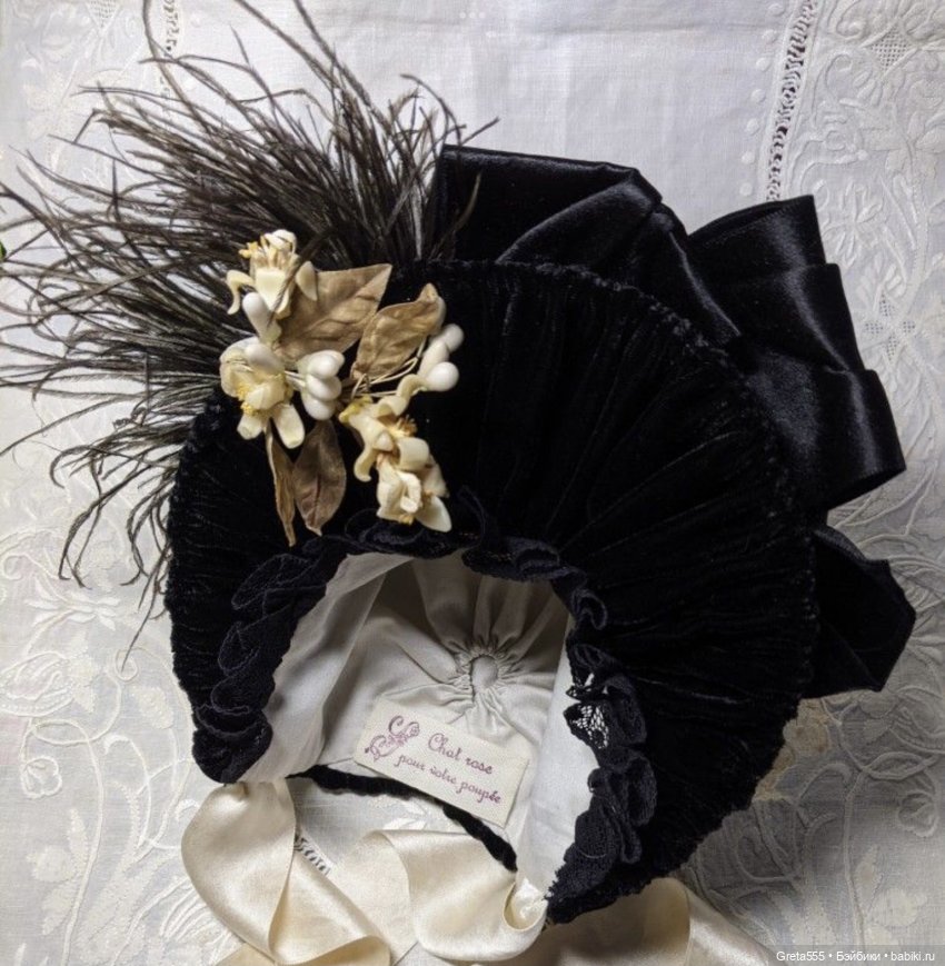 Понятно что основа такого викторианского бонета — это чёрные старинные шелк, бархат и кружева…