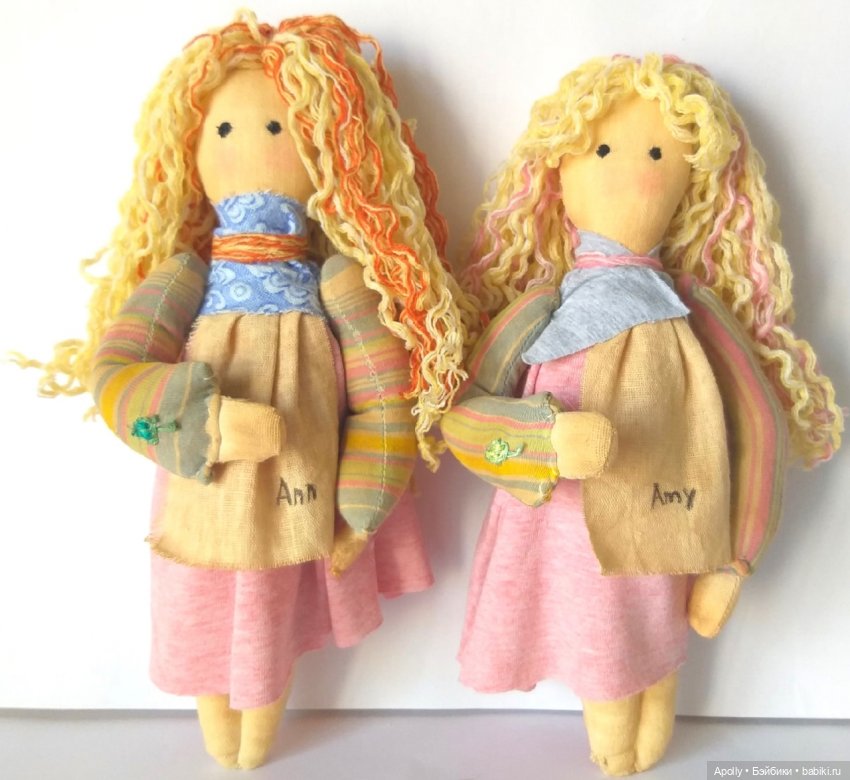 Говорят, что куколки по одной не селятся )) Так и у меня появились близняшки с фиолетовыми глазками. Одной сделала карэ и оставила челку, а другой оставила длинные волосы, но убрала челочку. Потом сшила платья, которые вроде одинаковые, а вроде бы и нет ))