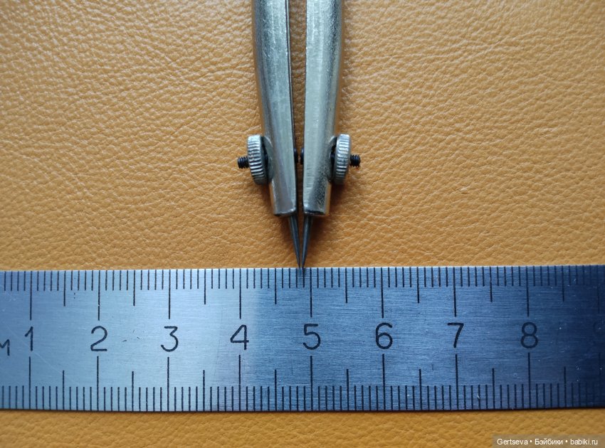 Для строчек капроном 50К я использую разметку с шагом 2,3 мм, но можно взять и меньше. Просто я еще не нашла и не придумала подходящее приспособление для разметки с меньшим шагом. Профессиональных пробойников с таким шагом в доступном пространстве нет, минимум 2,5 мм. Но надо учитывать, что и зубчики пробойника должны быть очень тонкие, иначе большие дыры испортят весь вид. Пока пользуюсь для разметки копировальным колесиком, а потом протыкаю отверстия острым шилом.