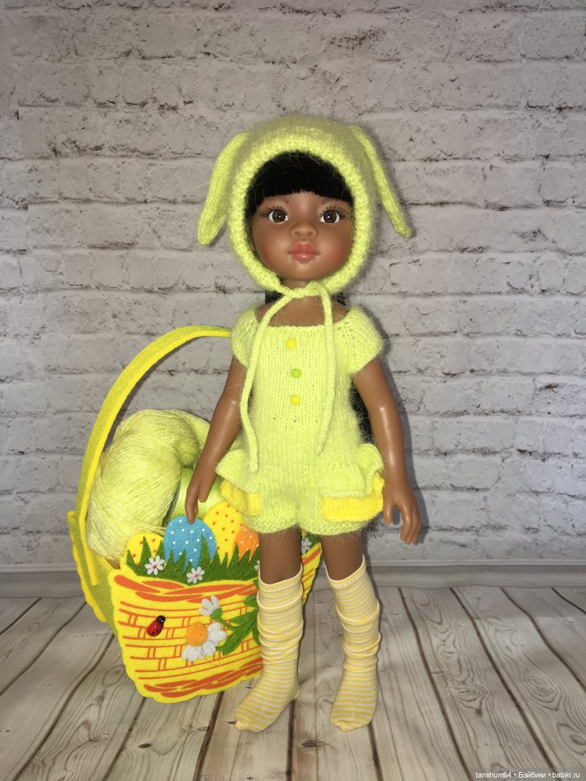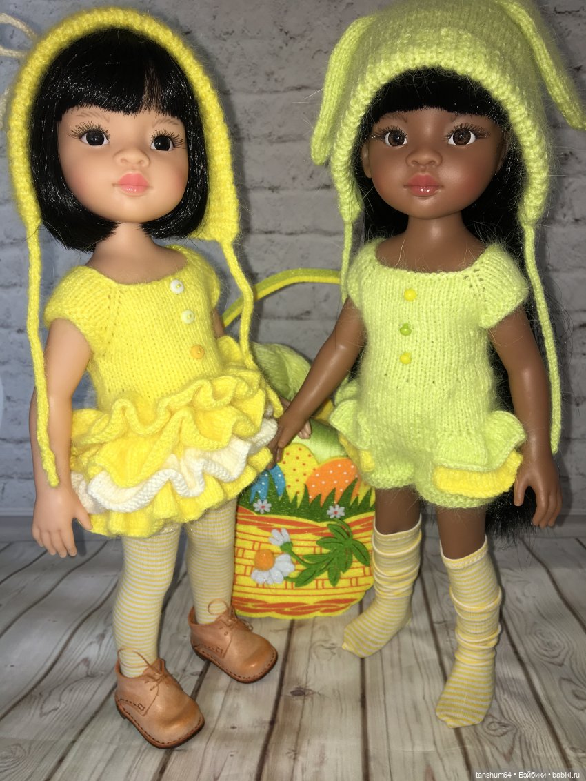 Знакомьтесь, подружки Цыпа и Зая, и та самая заветная корзинка с ниточками, из которых, собственно, и связались мной нарядики для девчат 😊