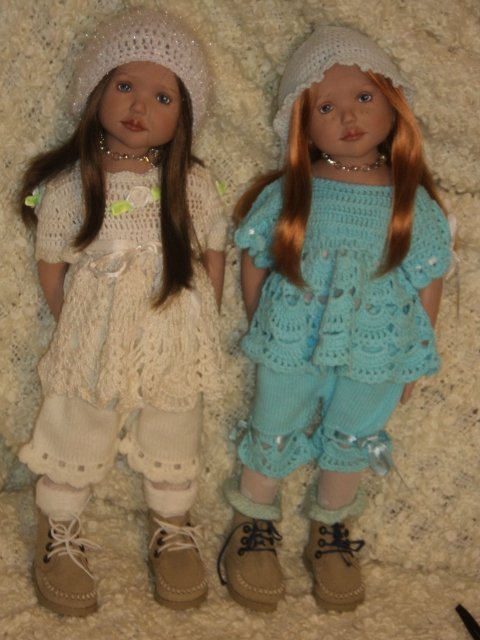 Платьица красивые. Как же я обожаю вязаные вещи на куклах детей этого возраста! Куколки сразу превращаются в живых девочек, только миниатюрных.