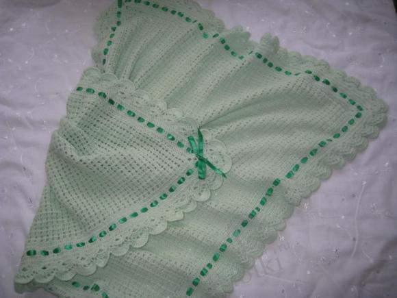Зеленый плед чуть меньше розового.