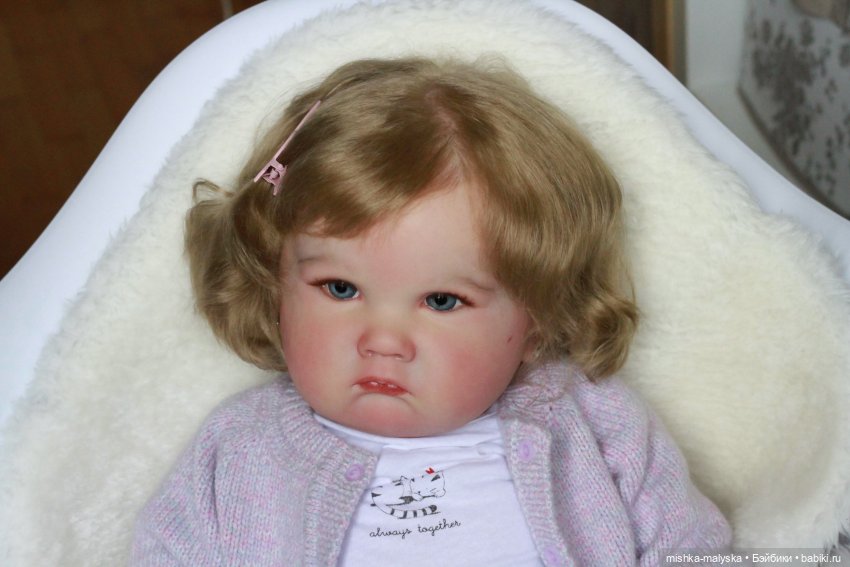 Девочка уехала к новой маме, так как у меня она была совсем без внимания. Так как на силикон сильно липнет любая пыль, ворсинки от одежды, то куколку нужно купать, а это может повредить росписи и силикону в принципе(со временем). Я её, по большей части, хранила в коробке и доставала от случая к случаю.