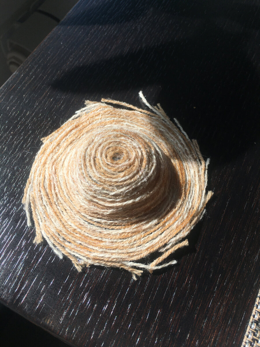 Бахромчатый край я изображала из нарезанных кусочков тех же ниток, приклеивая их по всей окружности шляпы. Вновь все просушиваем и снимаем с пленки.