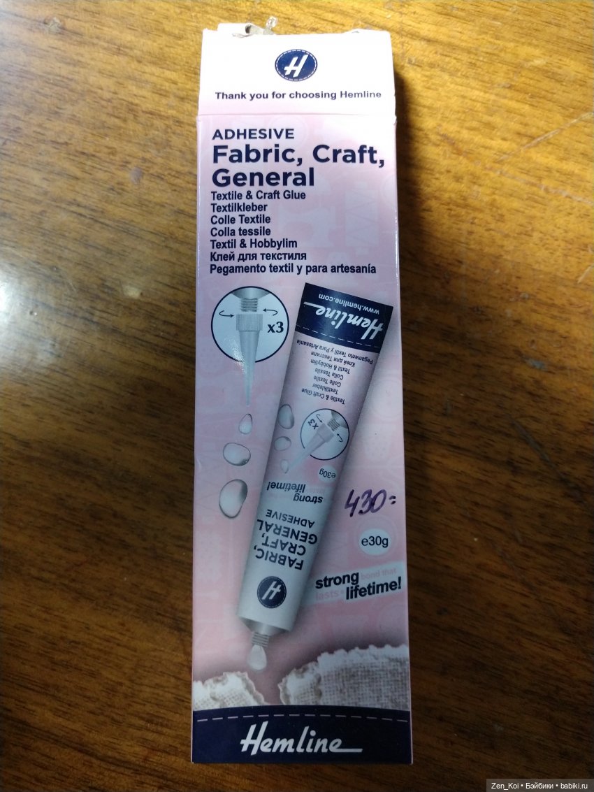 Клеем я пользуюсь фирмы prym. До этого я пробовала разные клеи. Первый был из японского 100 йенника (местный аналог фикс-прайса). Очень нравился, но как я заметила на некоторых тканях через какое-то время он начал желтеть. ((