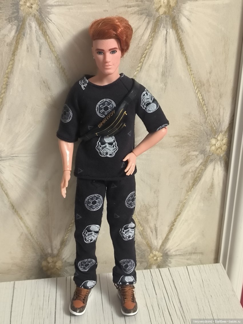 Кен красавец. И шлепки модные. 😊 футболочка можно считать готова, а штаны нужны обязательно. 😊