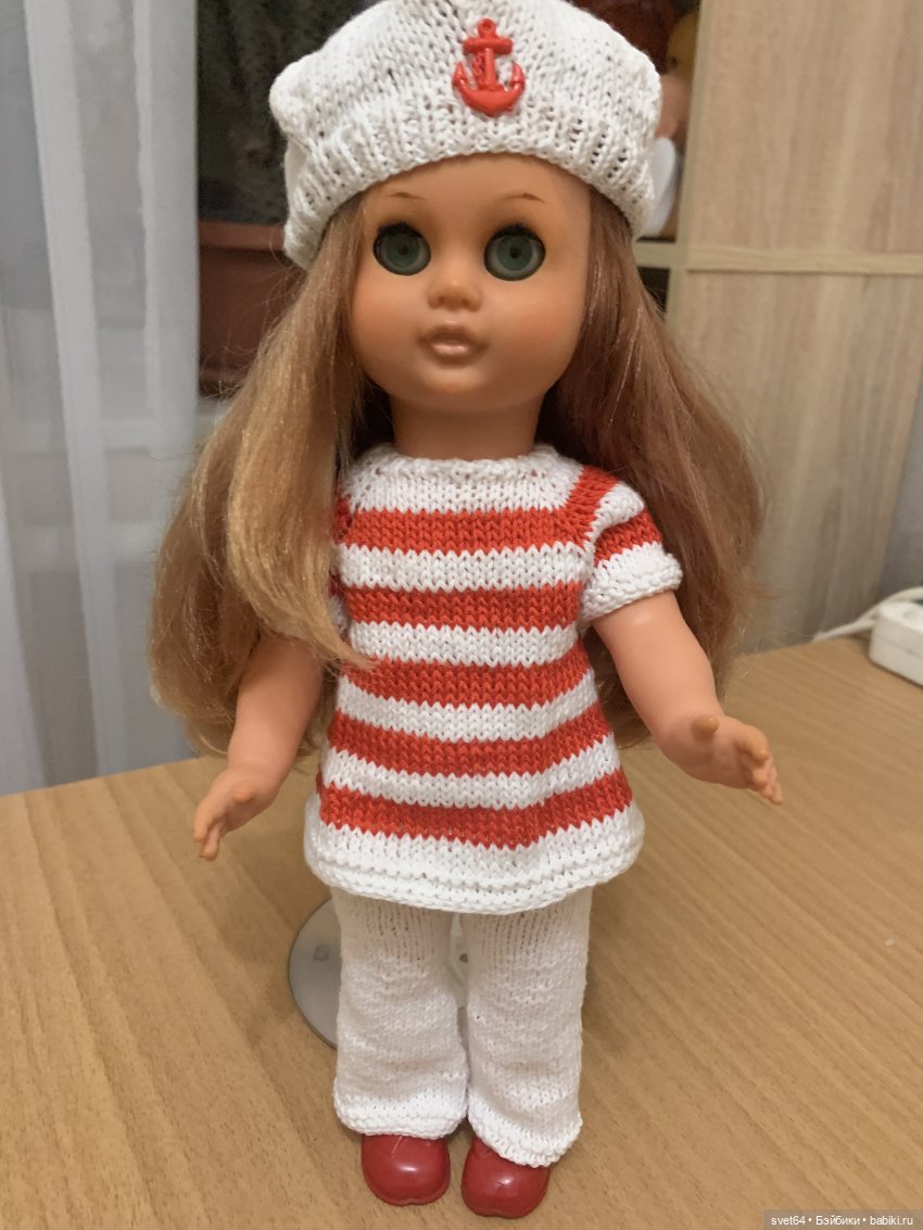 Недавно одела то же немочку, но другую! Они очень милые! И вязать на них так приятно! Разделять нитки, что бы вязать потоньше! Интересная мысль. Наверное воспользуюсь! Вязала ниточками для шитья—не очень! Но мои куколки побольше!