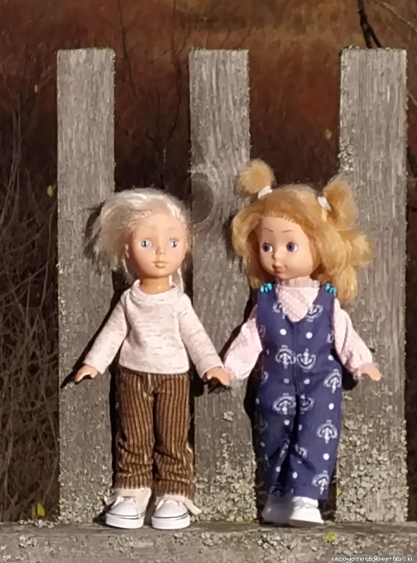 Вот они вместе, девочка в комбинезончике из рубашечной джинсы.