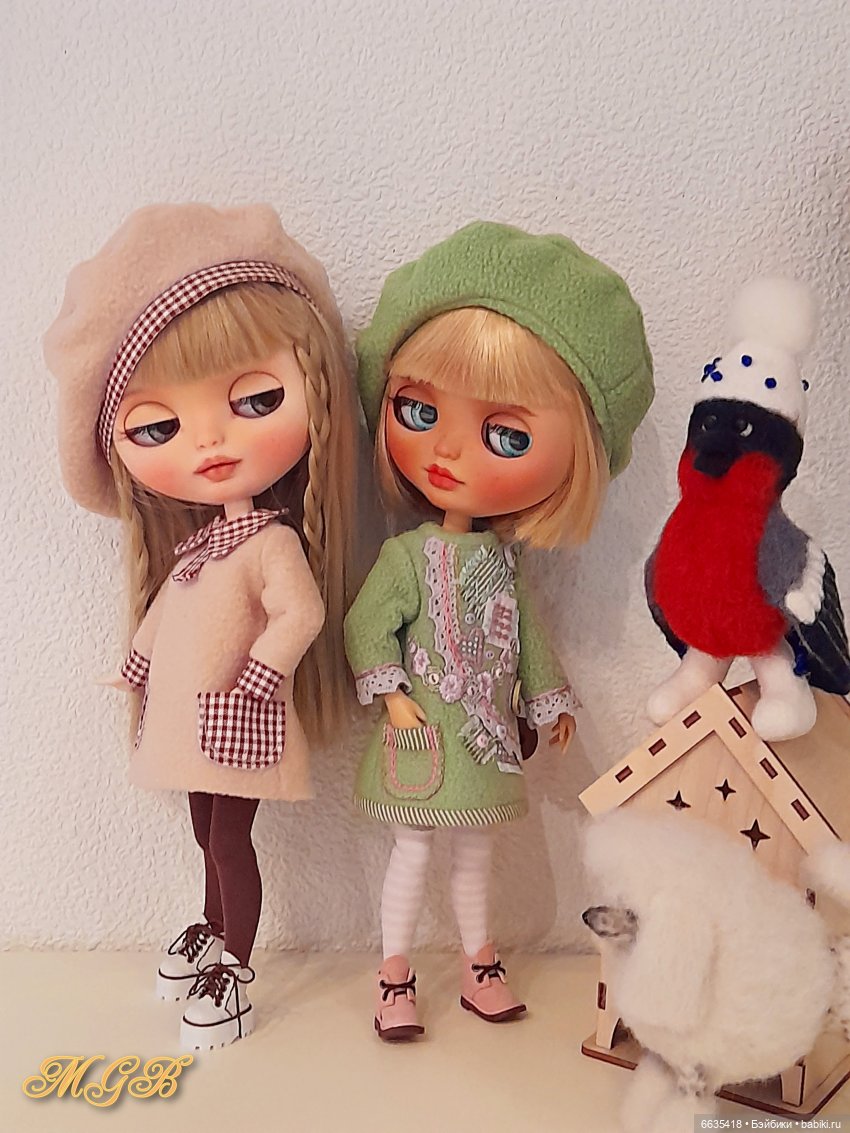 Возможные модели одежды для куклы из флиса демонстрируют куклы Блайз.