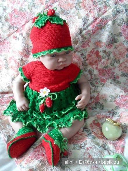 Неоднократно любуясь восхитительными нарядами-Клубничками, которых создали мастерицы нашего сайта, решили с доченькой, что пора бы и нам рискнуть связать свой вариант:)
