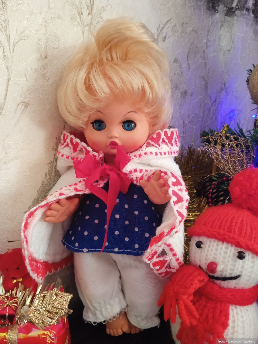 Кукла прошла огонь и воду. В смысле варварские руки меня, моих сестёр, моей племянницы… Недавно я отыскала её в недрах антресолей у мамы, забрала, отмыла, подлатала, ресницы вставила, чуть подкрасила, платье на скорую руку сварганила. Ну вроде всё.