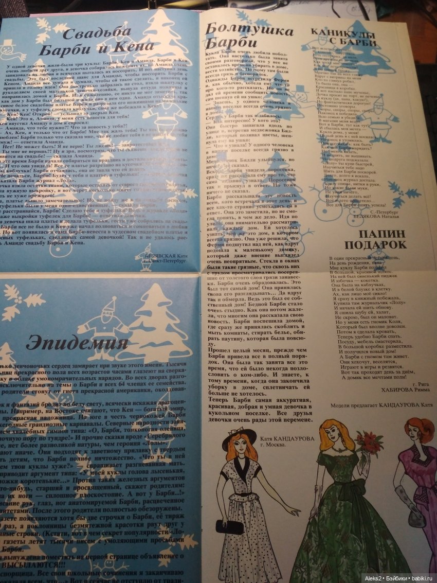 Да, в Москве, конечно, попроще было с журналами. Помню, что однажды я какую-то «Лолу» случайно в «Детском мире» увидела. «Барби-Моды» первые ловила на большом лотке с газетами и журналами у нас на вокзале, я возле вокзала живу, там в 90-е было бесконечное количество разных ларьков и лотков интересных. А потом уже где я только не встречала эти журналы, где-то порой и далеко от дома и школы. Одну «Барби-Моду» в каком-то книжном магазине неожиданно увидела, одну «Лолу», помнится, на лотке, на железнодорожной платформе, причем не на той, что возле дома, а на следующей станции. Уж не помню, что я там делала… Еще как-то мы с младшей подружкой ездили в какой-то магазин вместе — за тканями для кукольного шитья небось, обычно это у нас была главная цель всех совместных поездок — так там тоже нашли лоток, где продавалась «Лола». У меня часто не было с собой денег, приходилось ехать за ними домой, потом приезжать заново, но я очень упорно все эти журналы собирала.