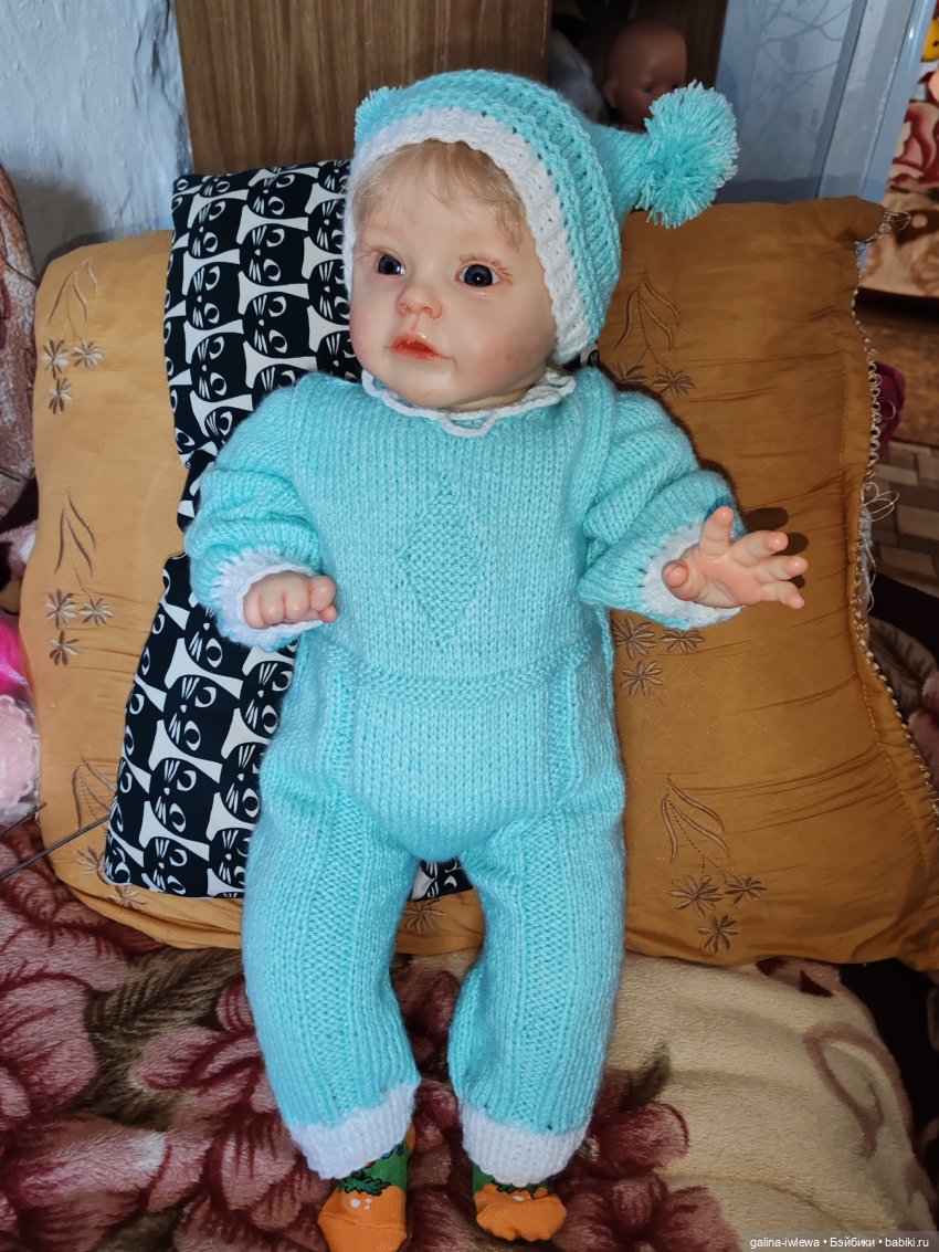 Добрый вечер! Сегодня покажем комплект для Афины. Девочка, ну скажу я вам, очень своенравная). Сначала я вязала для нее комбез, но она не захотела его носить и мы одели его на Айгуль, потом был костюм, но он оказался ей большой и нарядилась в него Лада, и вот только платье подошло и видимо понравилось, снимать не хочет).