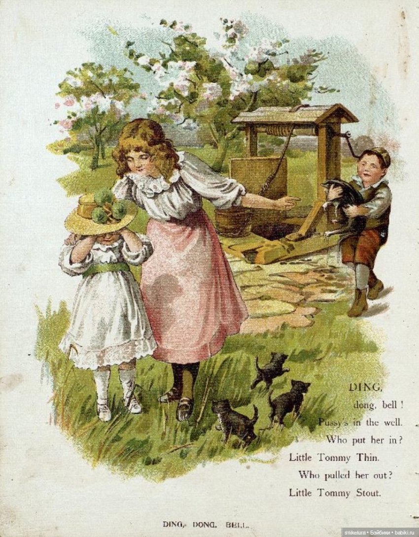 Детская книжка стихи с картинками «Ride a cock-horse and other rhymes», 1890-е годы. Понравились картинки, яркие, красивые костюмчики и платья на детях, интересные жанровые сценки. думаю, что могут послужить как идея для ватных игрушек и одежды для кукол.