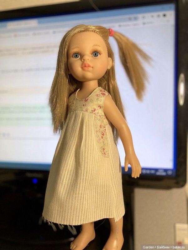 Платье с фартучком, как и матроска, два вечных наряда, не оставляющих меня в покое сколько бы я их не шила. Это базовые вещи, обязательно нужные каждой девочке( т.е. кукле) :))