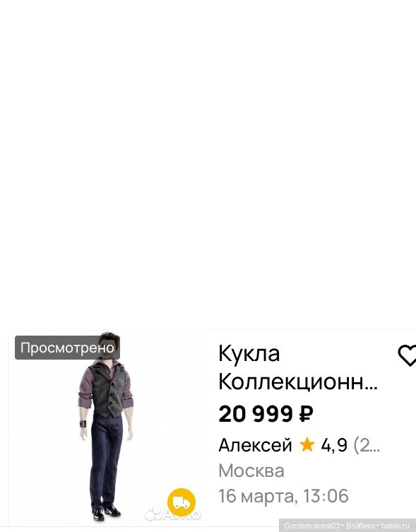 Я не стала доставать продавца просьбами прислать дополнительные фото, потому что побоялась что кена выкупит менее дотошный покупатель — от меня уже не раз уходил кен из других объявлений, я просто не успевала быстро сориентироваться.