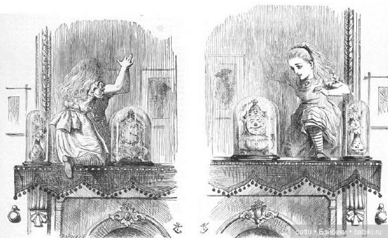 Алисой я уже восхищалась в прежнем топике, очень мне нравится сложившийся у вас образ. А ее фотографии у камина напомнили тенниеловское начало «Алисы в Зазеркалье». Я прикладываю иллюстрацию с тайным умыслом, вдруг вы тоже надумаете это снять? )) Сцена для лета идеальна — очень интересно снять переход через зеркало из нормальности в зеркальное отражение комнаты (фотки зеркальной комнаты легко перевернуть в фотошопе), а потом сразу в «сад, где цветы говорили». Как раз летняя тема.