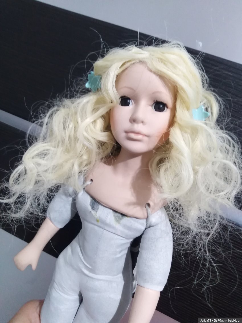 Кончено, в идеале, парик тоже нужно поменять — он настолько испачкан клеем, что привести его в идеальное состояние невозможно, но это уже со временем сделает хозяйка куклы :).