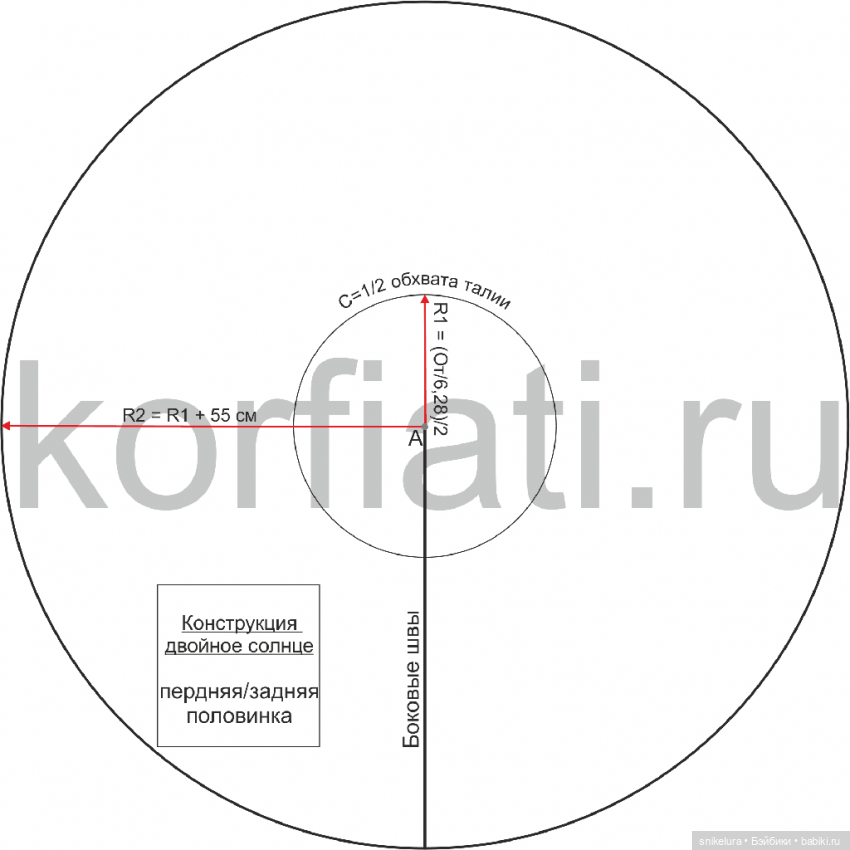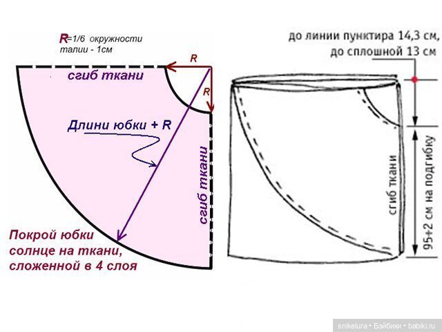 Либо по типу Солнце — но в талии больше и собрать, тогда пышнее будет. Я квадрат складываю в треугольник и обрезаю вверху и внизу ровняю.