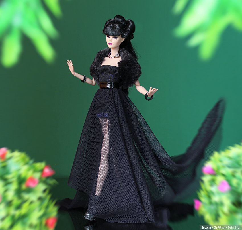 Решила я топ переделать, сшить его без застежек, ну получилось, конечно, но налазит впритык, со скрипом, на жопастых кукол не пойдет. Топ из фатина и черного тянущегося материала под кожу.