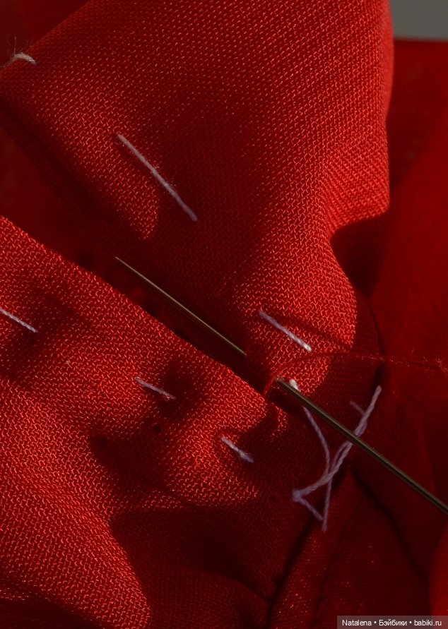 Потом вкалываю иглу так, чтобы стежок на противоположной стороне начинался точно напротив того места, откуда вышла нить предыдущего стежка.