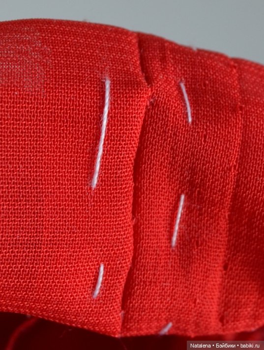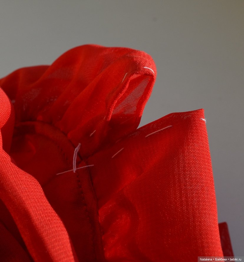 Дальше аналогичным образом собираются все остальные оборки. Они просто пристрачиваются к каркасу двумя параллельными строчками, без каких-либо подгибок.