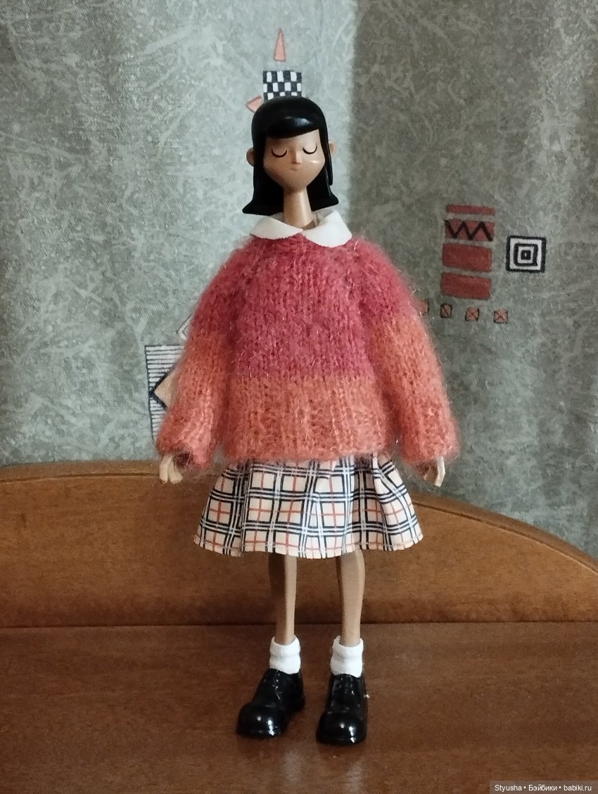 Моё увлечение вязанием наконец добралось и до пижамных принцесс формата 1/12.Стопка платьев и свитерков.