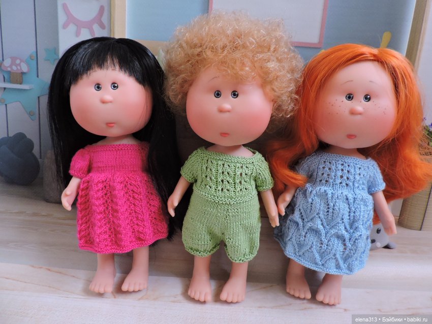 Мы пока нарядились в то, что быстро шьется — вяжется, чтоб голышами не стоять. Теперь будем потихоньку переходить к более сложному и красивому.