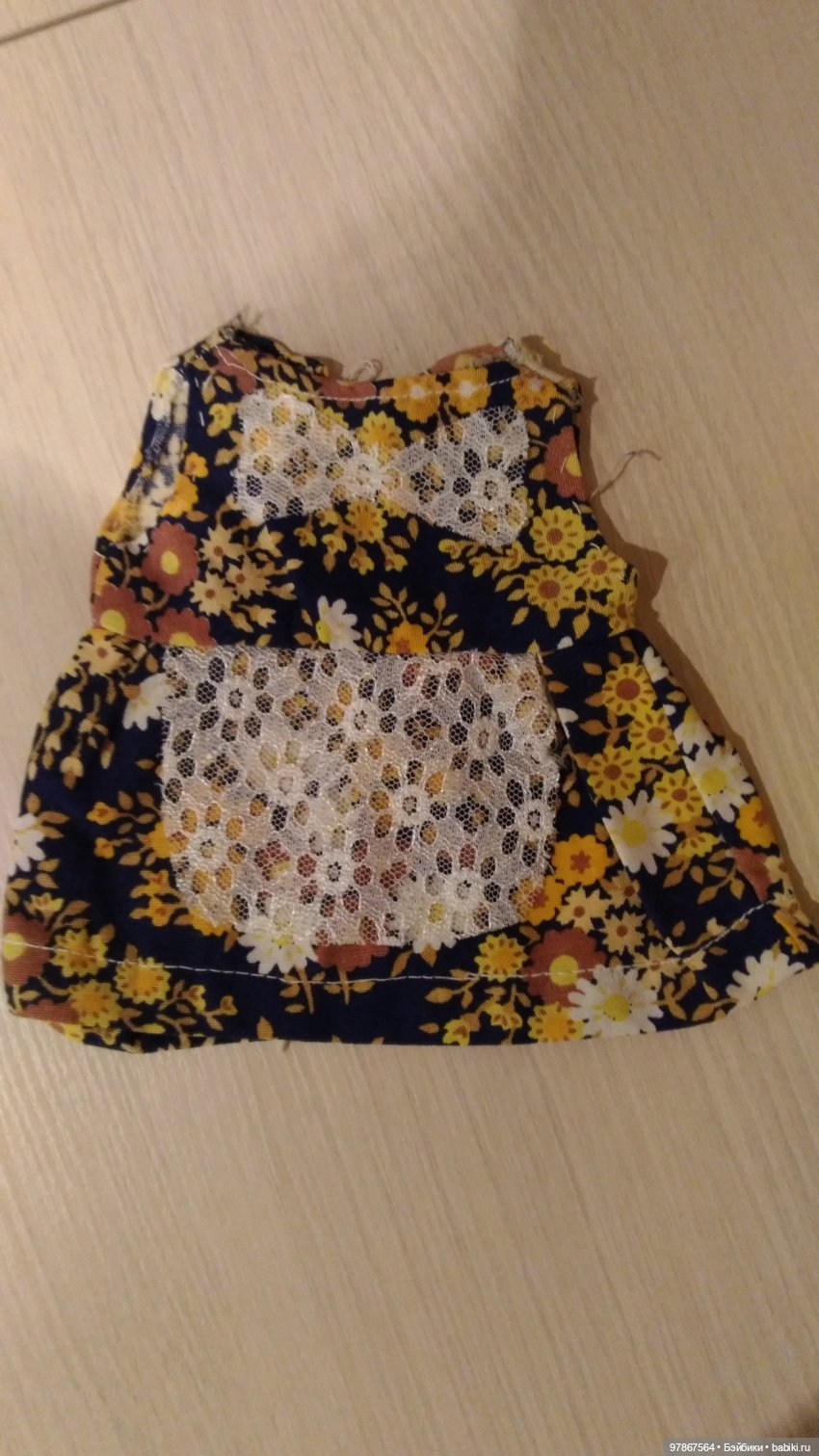Из тех же времен и следующие наряды. Сарафанчик — юбка из шелковой ткани в бантовую складку с широкими бретелями. Все та же аккуратная работа взрослого человека.