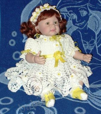 Инночка вся спарилась в жару 42 градуса! Пришлось вязать платьице — легкое воздушное, продуваемое всеми ветрами, которых нет!
