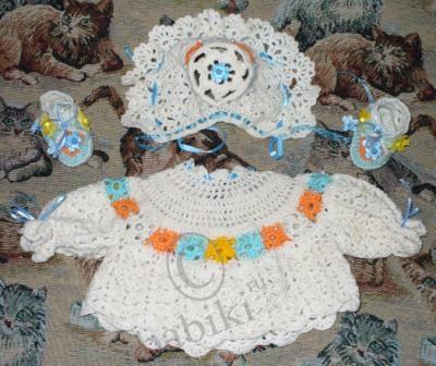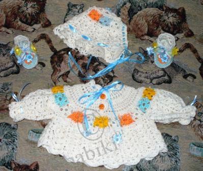 Все связано крючком, с добавлением отдельно связанных элементов, связался комплект тоже быстро( это еще в конце мая, когда воспалением легких болела)