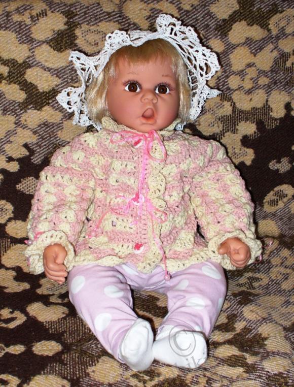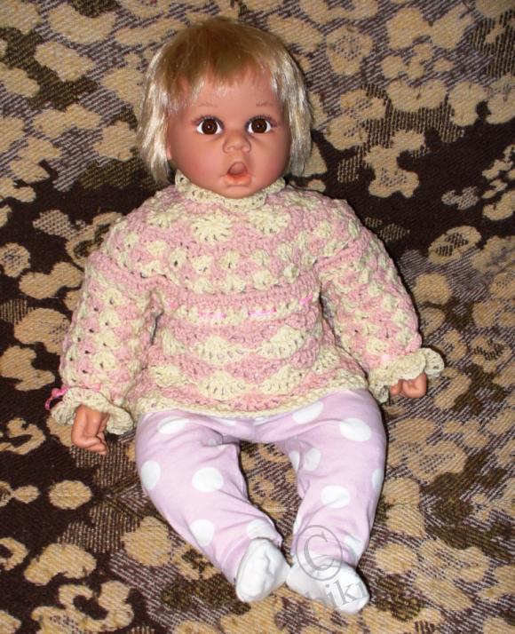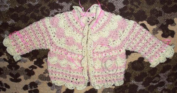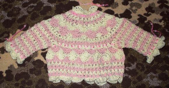 Розовую кофточку распустила, а поскольку весь день еще сижу дома без воды( не постирать, не помыть, не приготовить) уже кокеточку другую связала.