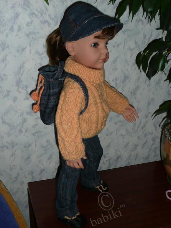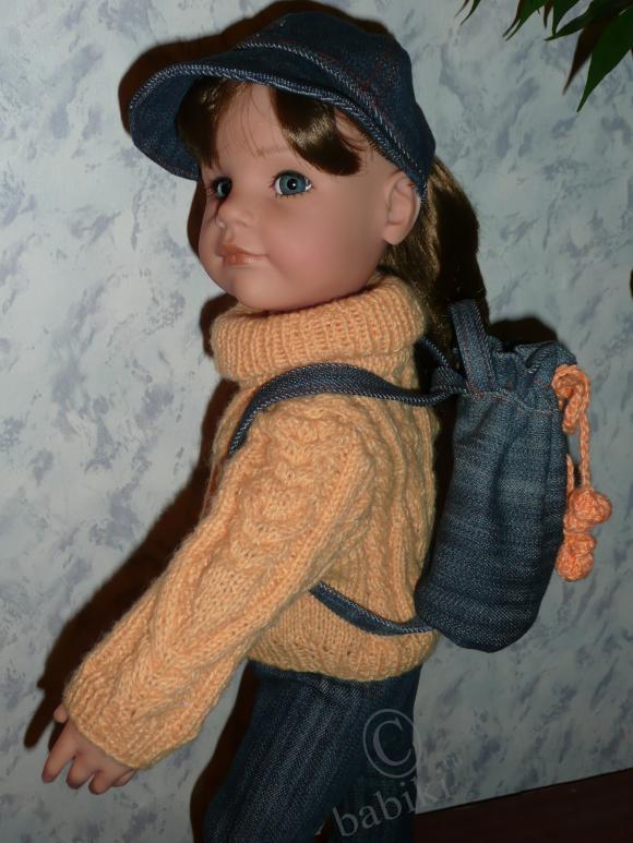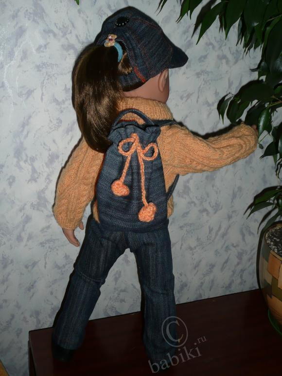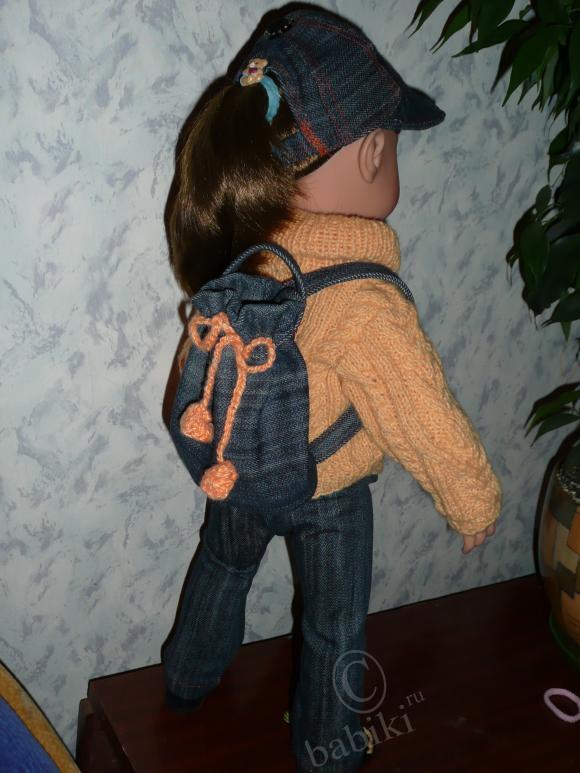 Но для прогулки явно чего-то не хватает! Куда же Сара будет складывать необходимые ей на прогулке вещички? Пришлось сшить вот такой рюкзачок!