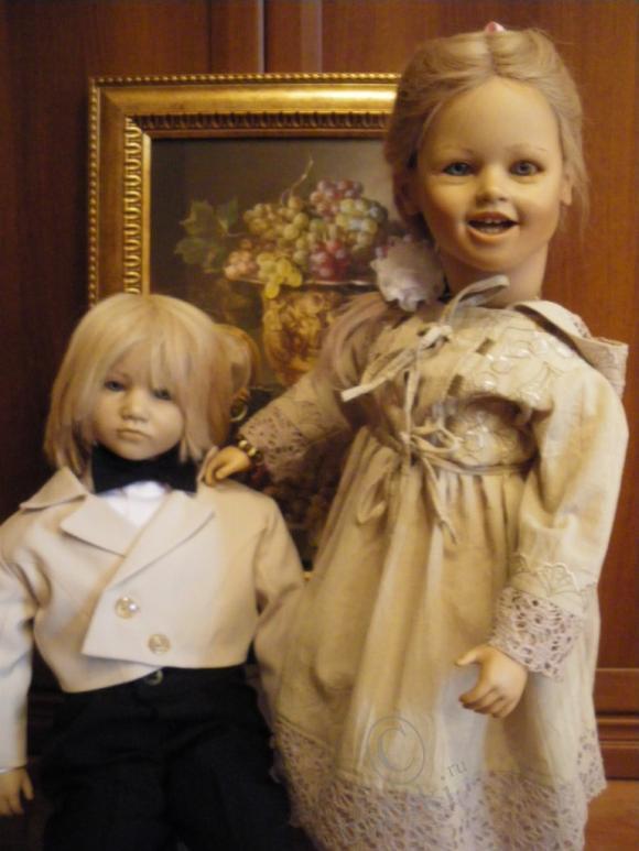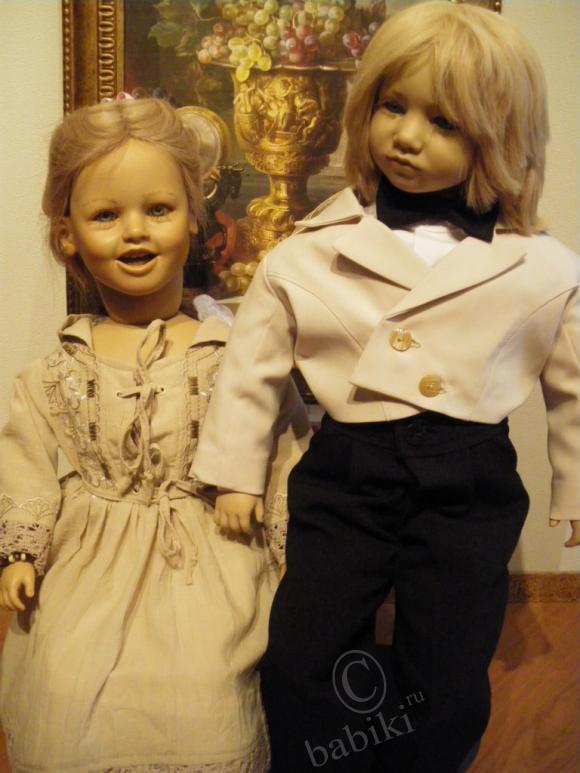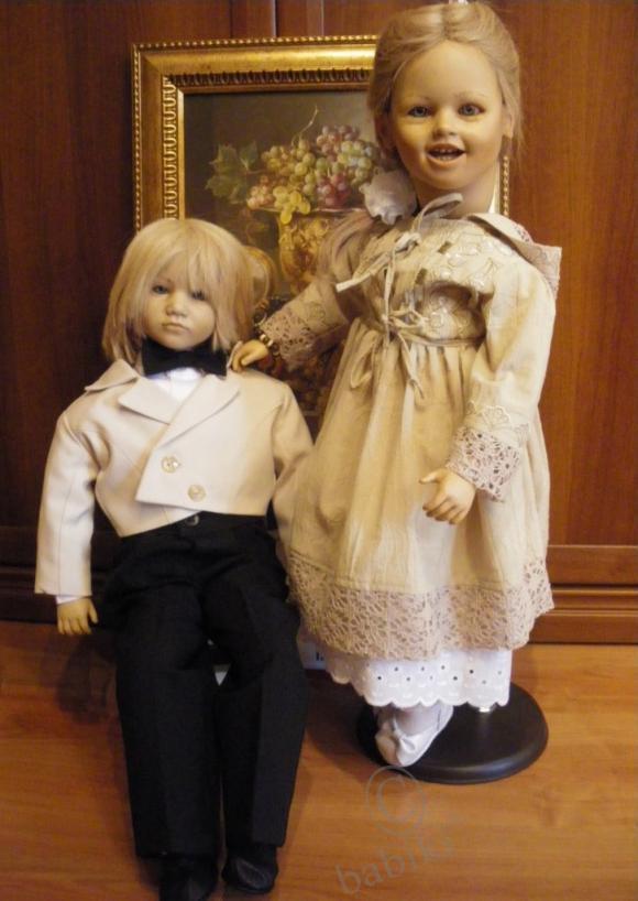 Единственное, что могу, если уж тебе критики охота, то куклы светлые и цвета ты им подобрала не совсем их-тоже светлые. Нет контраста, добавь девочке тëмную жилетку, а мальчику подходящую к глазкам рубашку или яркий галстук-платок на шею всë может измениться! Нужна яркая точка в костюме.