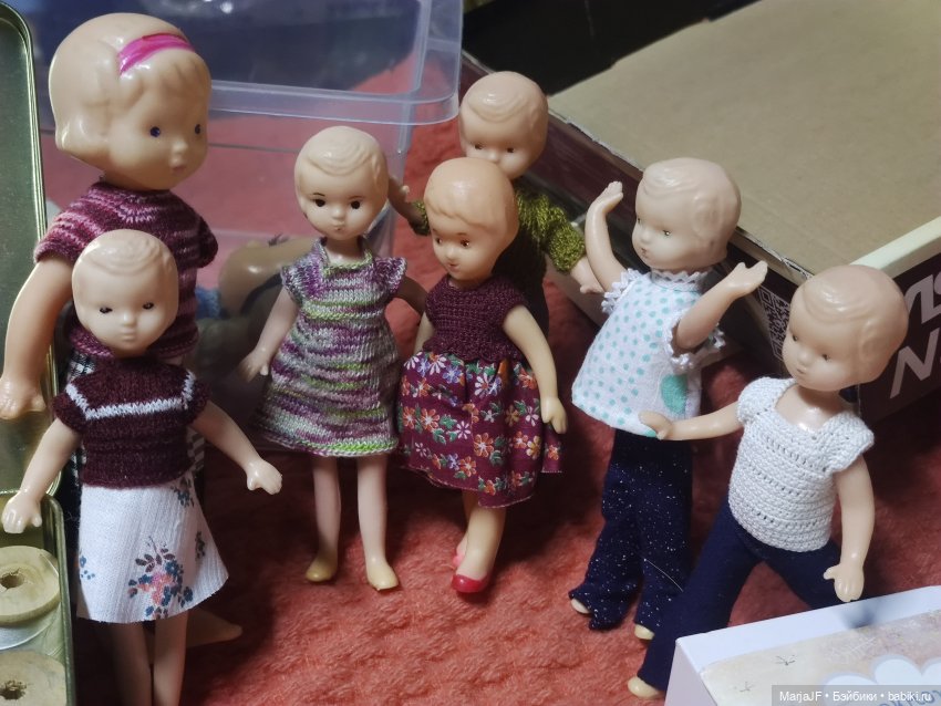 Приветствую всех жителей любимых Бэйбиков! Это мой первый топик здесь, прошу не судить строго)) Хочу поделиться своим хобби, которое, в свое время, помогло мне справиться с последствиями инсульта. Вязала всегда. Но на малышей стала вязать, заставляя работать руки. Куколки со временем уменьшались, от паолочек до баболиков и меньше. Сейчас могу показать даже одежки на деток 3 см-силиконовые малыши появились у меня не так давно, сначала 7.5 см, потом 6, и вот теперь 3см- прекрасные младенцы от замечательного автора Ольги Максюковой. На фото вы увидите и других мои куколок из собственной коллекции. Буду рада комментариям и общению, пишите, приходите в гости со своей малышней!!)) В общем, далее много фото, это не все куколки, только малыши менее 10 см. Пишите, единомышленники и коллеги по хобби, очень рада буду обрести друзей))