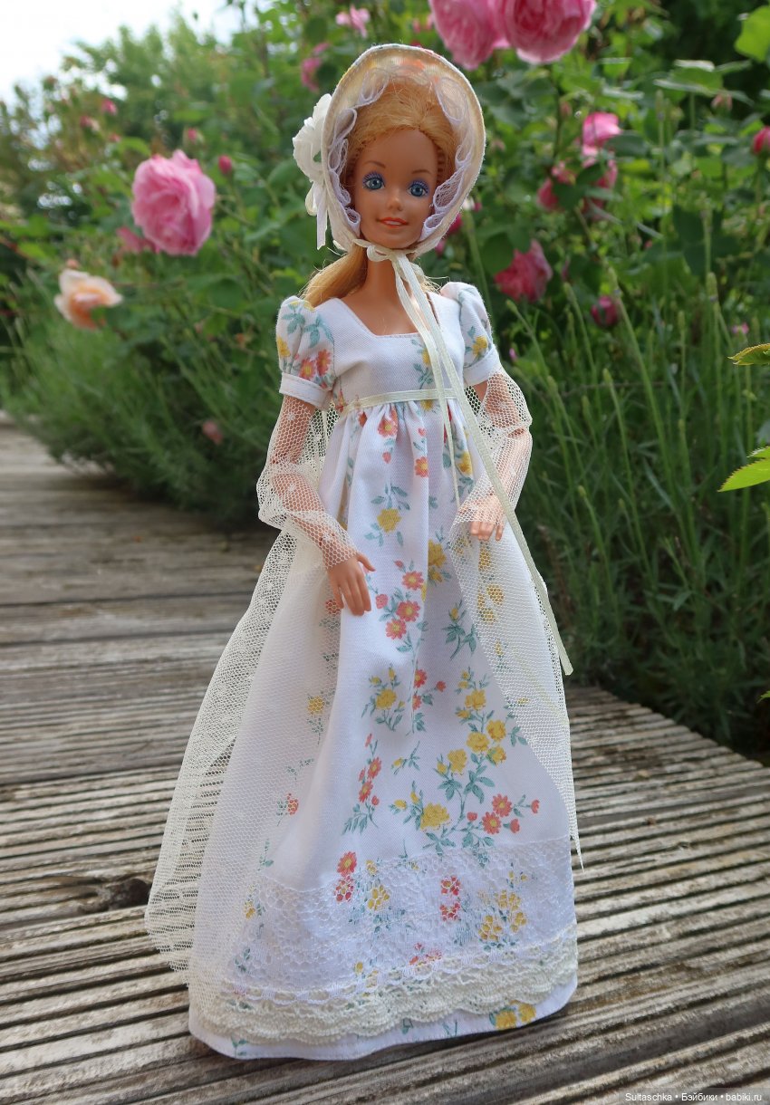 На просторах инета можно найти выкройки средневековых платьев на Барби. Да и здесь девочки тоже делились подобными выкройками. По идее эти средневековые и фантазийно-эльфийские платья похожи по силуэту на платья а-ля 19 в. и их можно взять за основу. Только, конечно, стоит изменить рукава…