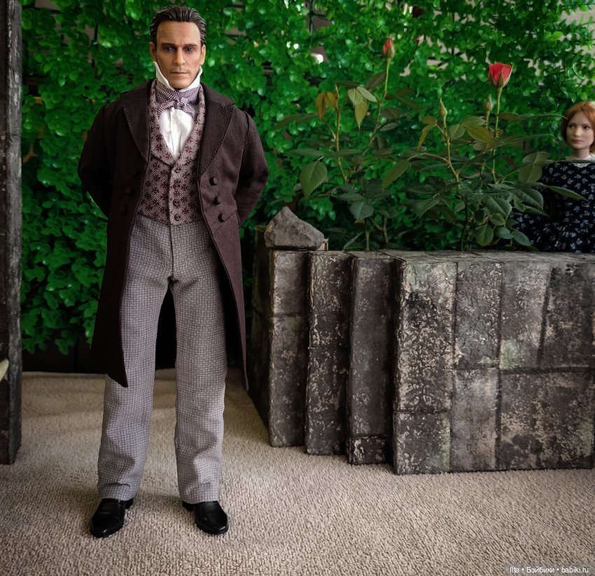 Но увы, обнаружилась проблема — я не могу найти для неё наряд. Мне хотелось бы что-то соответствующее периоду, но я не очень хорошо шью (в общем-то на кукле нижнее платье моего авторства, получилось грубовато). Найти подобные вещи в достаточно хорошем исполнении оказалось очень сложно, чаще всего наряды либо слишком современные, либо слишком фантазийные для моей идеи.