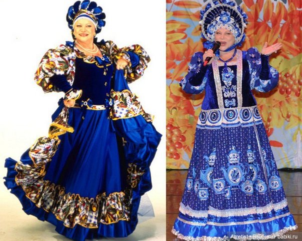 Нужен всесторонний ликбез, чтоб не путать. Но, к сожалению, творцы костюмов часто не в курсе, а если им и пытаются разъяснить, что к чему — то отмахиваются. Мол, я художник, я так вижу. В итоге у нас на уровне всей страны мало того, что колоссальное психологическое неприятие НАРОДНОЙ одежды и её ношения в обычной жизни (посмотрим в других странах: там это в порядке вещей, никто не стыдится, никто пальцем не тыкает — во, мол, придурки!). Так ещё и святая уверенность в том, что НАРОДНЫЙ костюм — это вот и есть та самая «клюква» с метровыми кокошниками, рубахами в красных петухах, аляпистыми сарафанами (да ещё и мини), париковыми косами, приклеенными к груди (ну не носили так косы!!! Попробуйте с косой на груди весь день по хозяйству шуршать. Посмотрим, сколько раз и во что эта коса впутается в первые же полчаса!)… Естественно, что ходить в ТАКОМ в повседневной жизни никто не захочет. А появись кто в подобном на улице — тут же засмеют, обзовут придурком и… будут правы: сценический костюм всё-таки не для повседневной жизни и улицы. Беда только в том, что точно так же невежественные обыватели, путающие одно с другим, отнесутся и к НАРОДНОМУ костюму. Пошитому грамотно и с бережным сохранением традиций.