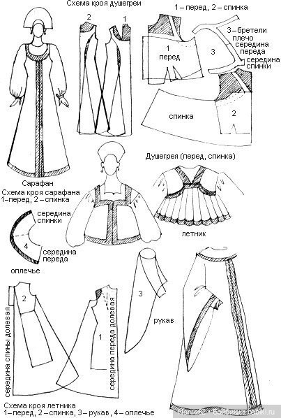 А как максимум — сарафан (и прочая одежда) ещё и подпоясывался (исключение — очень жёсткие и ценные ткани типа золотошитой парчи, там пояс на рубашку повязывался, под сарафан — чтоб парчу не портить перетиранием нитей). О чём вечно забывают наши «костюмеры».