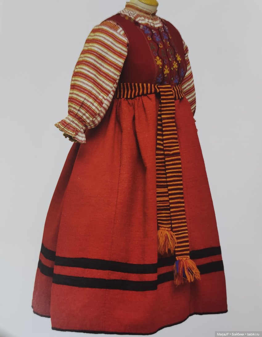 А, сарафан с отрезным лифом, знаю такой. Начало ХХ века, Петербургская губерния и окрестности ближе к Финляндии — если я ничего не путаю и не ошибаюсь. Городская среда, влияние «барского» платья и финского костюма.