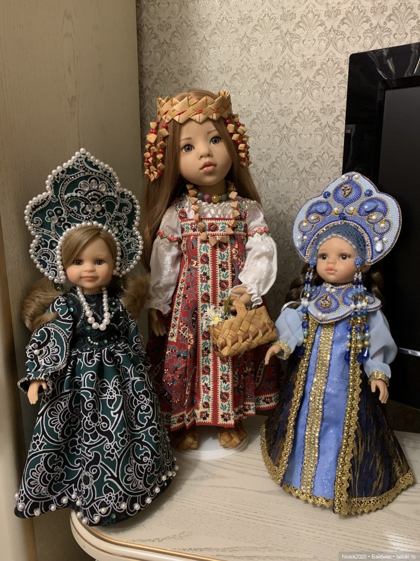ППС. Я ничего не могу поделать с их чересчур серьёзными лицами — их такими нарисовали!)))) Да и отсутствие наклонного шарнира головы заставляет снимать кукол чуть сверху — чтоб хоть в кадр смотрели. Поэтому тут не видно, что сарафаны не в пол, там из-под них ещё ботиночки видны.