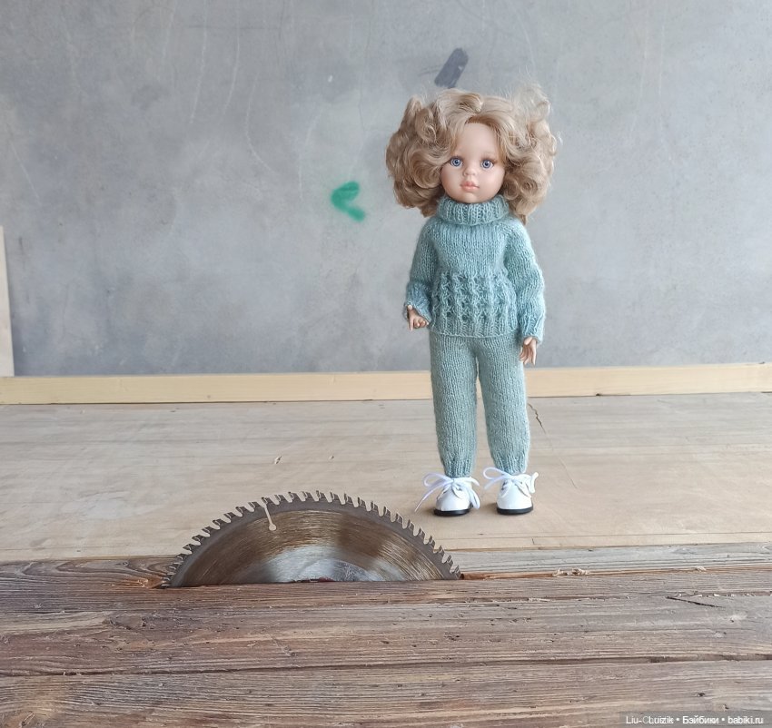 Недавно перебирала ящики с кукольными нарядами. Оказалось, что их слишком много. Лера влезла в зелёный костюм, сказала, что он ей нравится и в нём удобно по лесопилкам скакать.