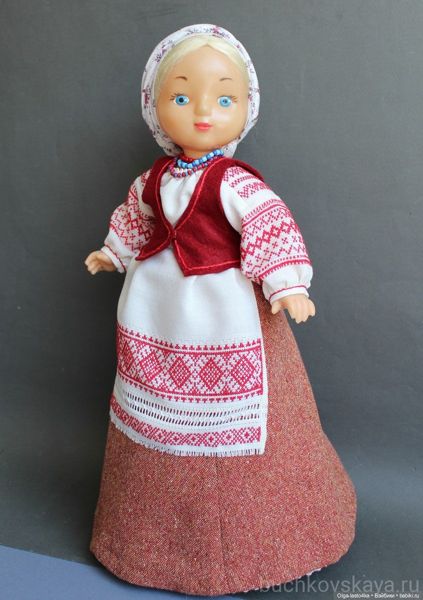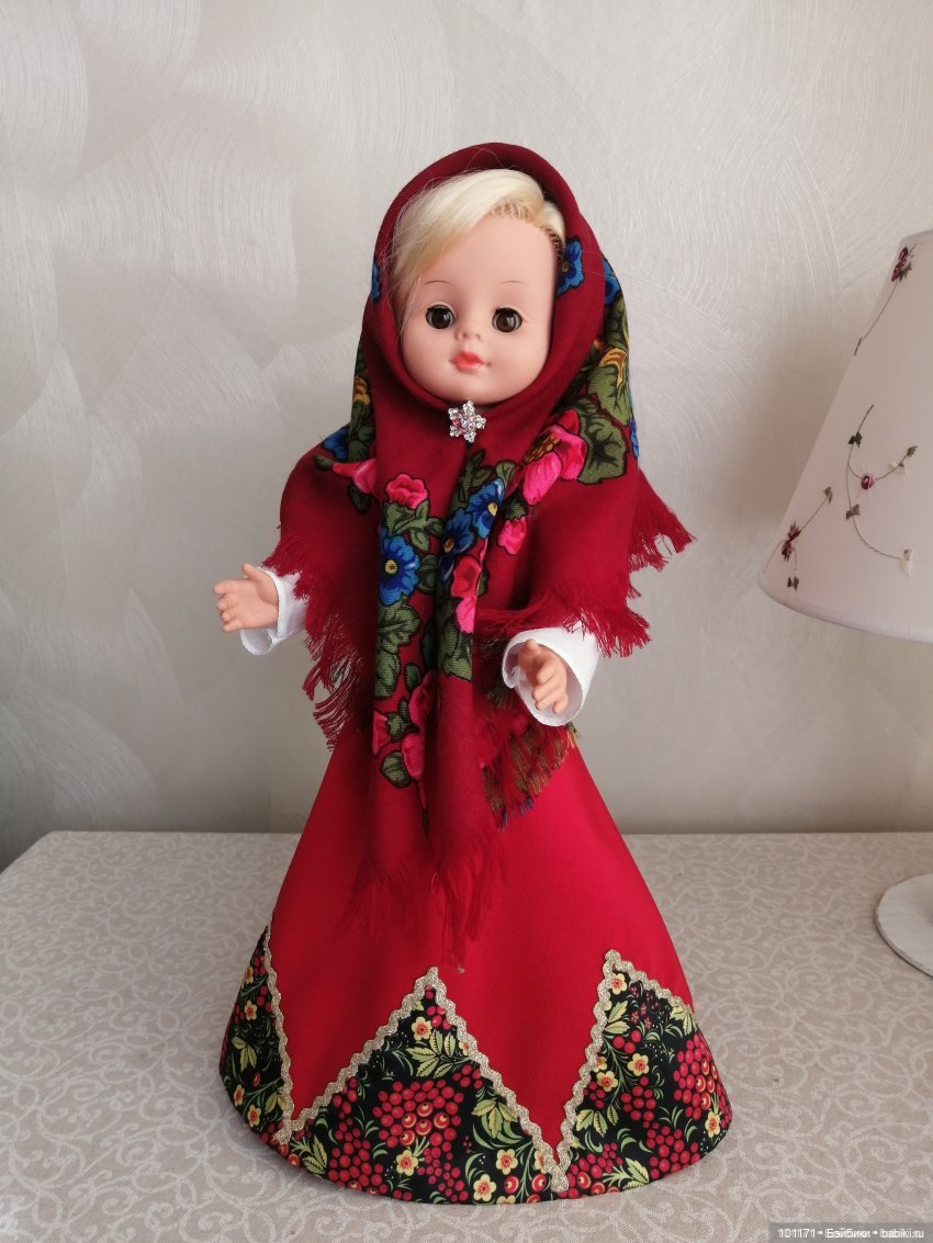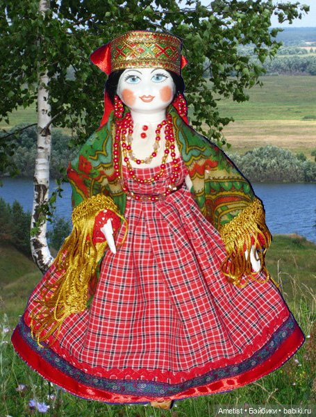 Исходно кукла была такая. Кто-то, видимо, думает, что русский народный костюм выглядит именно так:
