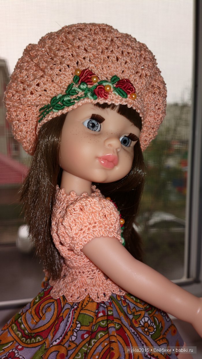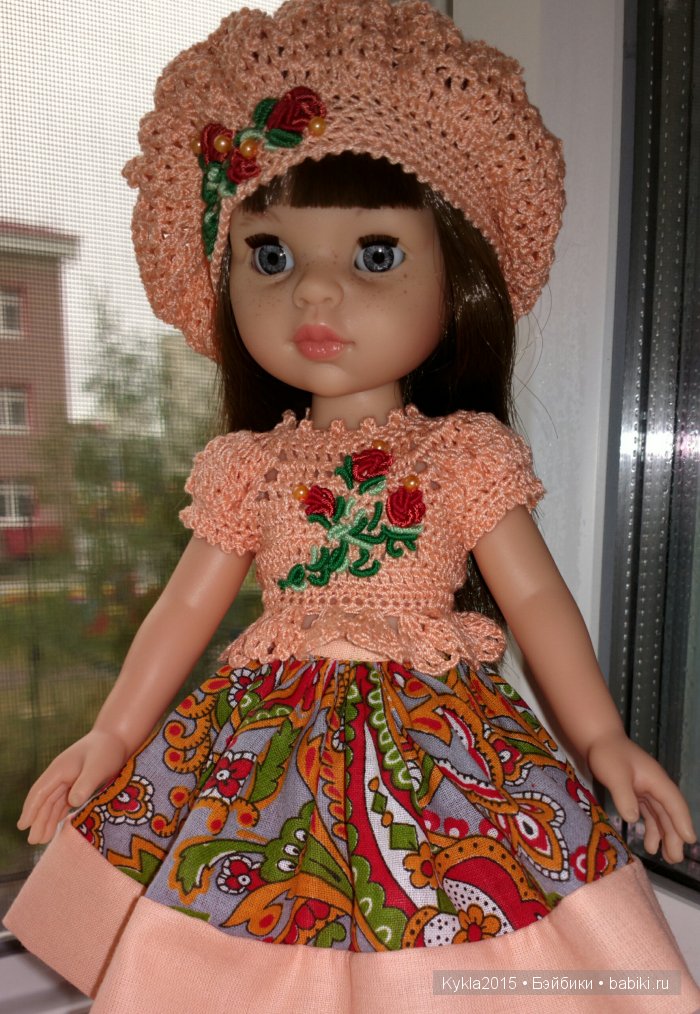 Привет всем, кто заглянул на огонёк!))) Хочется показать новую модель для куклы 31-34см. Впервые использовала сразу три вида рукоделия! Вышивка+ вязание+ шитье! Это несколько разнообразило мою работу, выполняла её с удовольствием и с желанием! Пряжи много, а вот ткани приобрела не так давно и теперь новые идейки, которые не дают спать спокойно))) нужно их по- тихоньку воплощать в жизнь*. Наряд примеряли Николетта и Норочка! Даже не знаю, кому из них больше подошел… Предлагаю посмотреть фото, надеюсь вам понравится)