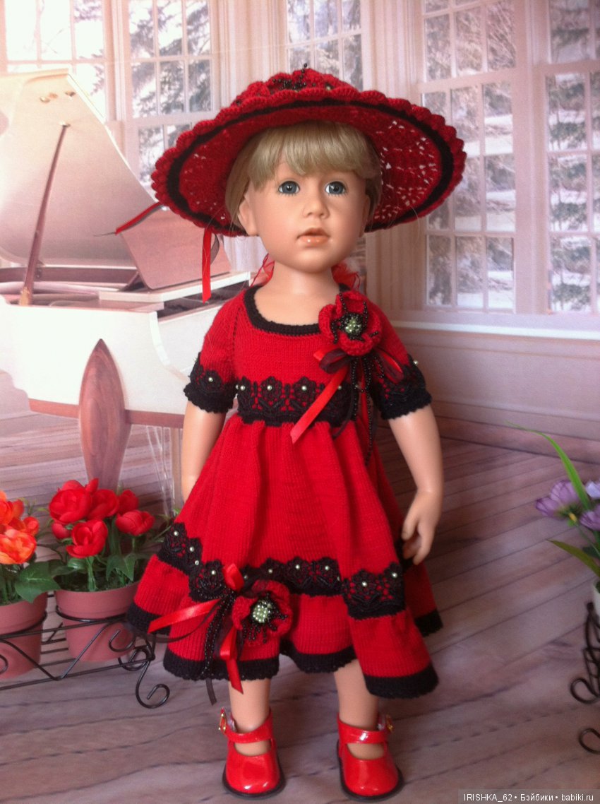 Молодец! Столько кукол нарядила в сложный (для меня) цвет. Несколько раз пыталась вязать из красного и пока никак. Для меня всегда перебор в цвете. Но у тебя ни в одном платье не нашла перебора. Все очень гармонично! Молодец!