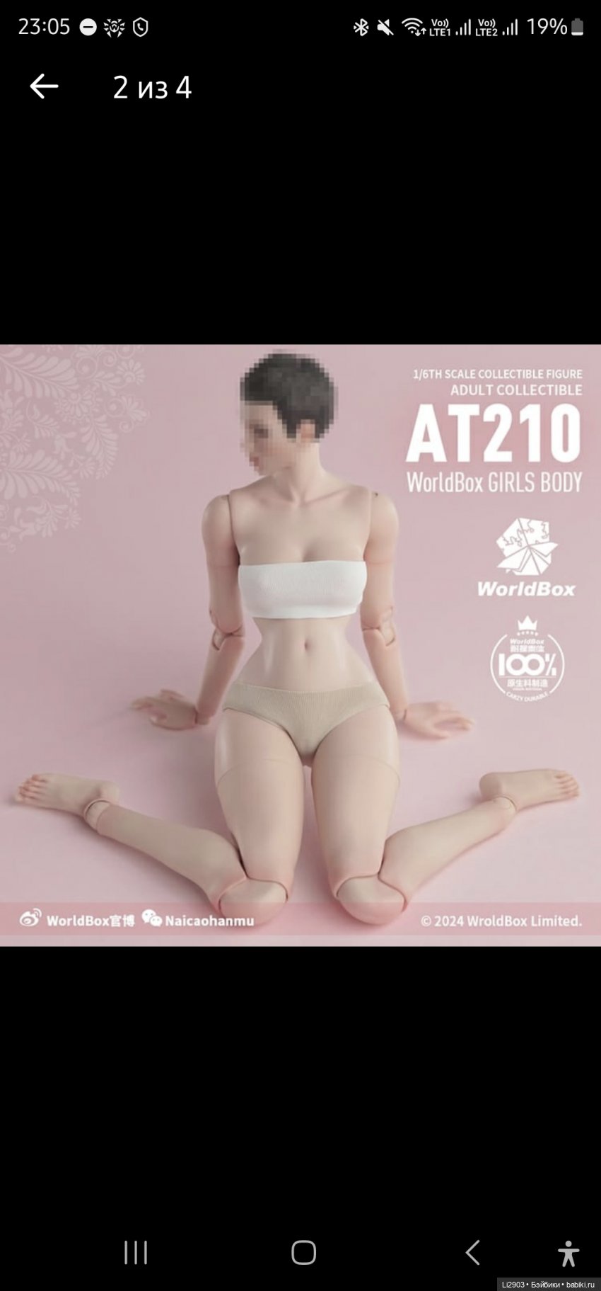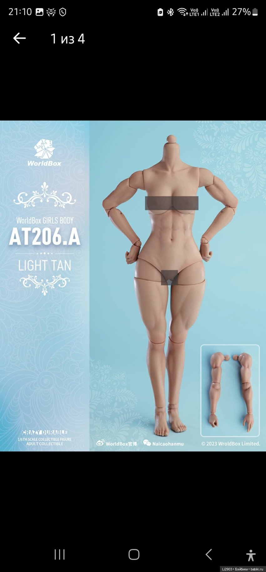 Ну вот и пришло тело. Могу теперь сравнить все три тела АТ 201, 202, 203.АТ 201 — у него короткие ноги, спортивный корпус, маленькая попа, тонкие ляжки. Можно сказать, подросток. Оттенок у меня загорелый, мне нравится, более человечный, что ли. На счет бюста скажу, что соответствует фигуре, как надо прям.