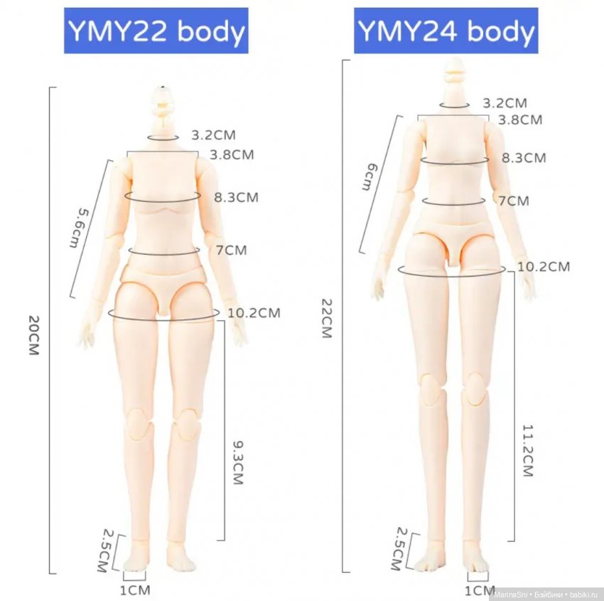 Насчет размеров я так понимаю, 22 — это рост куклы с пропорциональной головой) но это догадки мои, наверняка не знаю.