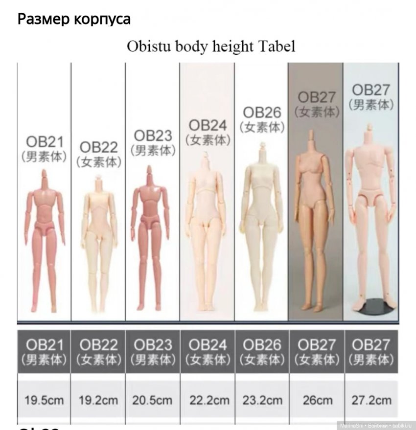 вот, померила сейчас Obitsu — 18,5 см с шейкой, но без крепления. Да, точно, Вы правы, маркировка 22 — это рост всей куклы.)