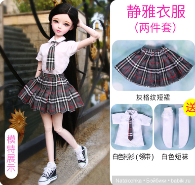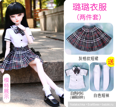 №12). Наряд «Школьная форма: блузка с бантом с клетчатой серой юбкой». Цена 1690 руб.